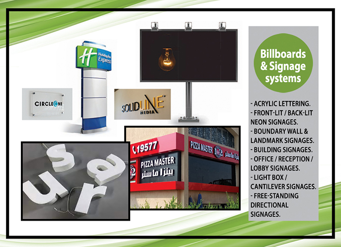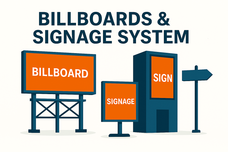 Billboards & Signage Systems are powerful outdoor and indoor advertising solutions designed to maximize brand visibility and deliver impactful messages. Billboards dominate high-traffic areas with large-scale graphics, while signage systems provide clear, professional branding for businesses, events, and public spaces. Built with durable materials and weather-resistant finishes, these systems ensure long-lasting performance and strong visual appeal, helping brands stand out and communicate effectively.