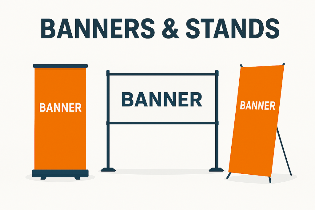 Banners & Stands are versatile marketing tools designed to display promotional messages, branding, or event information in a visually impactful way. Banners provide large, eye-catching graphics, while stands offer a portable and professional structure to hold them securely. Ideal for exhibitions, retail spaces, and corporate events, they combine durability with easy setup, making them perfect for both indoor and outdoor use.
